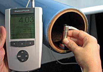 重現(xiàn)性 讀數(shù)的可靠性主要取決于讀數(shù)的重現(xiàn)性。電磁干擾是最普遍的導(dǎo)致誤差的根源,所以保護(hù)測量系統(tǒng)和探頭電纜免受這些干擾非常重要。 跟傳統(tǒng)技術(shù)不同,SIDSP®在探頭內(nèi)部產(chǎn)生和控制激發(fā)信號。回傳的信號直接進(jìn)行數(shù)字轉(zhuǎn)換和處理從而提供測量厚度值。厚度值通過探頭電纜數(shù)字化傳輸?shù)斤@示裝置,也就是說:在這種情況下模擬測量系統(tǒng)的信號傳輸過程中沒有更多干擾。即使您的測量工件需要特別長的電纜線也沒問題,加長的電纜線同樣具有極強(qiáng)的抗干擾能力。 EPK 的SIDSP®探頭具有極高的重現(xiàn)性。將探頭放在同一測量點(diǎn)測量幾次,每次您都可以得到基本一樣的結(jié)果,再次證明了SIDSP®探頭的優(yōu)秀性能。