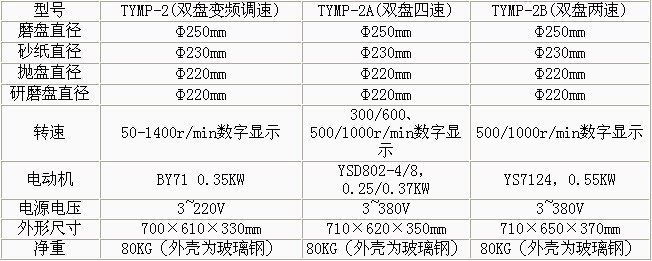產(chǎn)品概述: •TYMP-2無級變速金相試樣研磨拋光機(jī) 無級調(diào)速,轉(zhuǎn)動平穩(wěn),噪音低。 磨、拋、研盤轉(zhuǎn)速獨(dú)立操作。適應(yīng)各種材料的試樣制備 TYMP-2A雙盤四速金相試樣研磨拋光機(jī) 雙盤四速,轉(zhuǎn)動平穩(wěn),,噪音低,磨、拋、研盤轉(zhuǎn)速獨(dú)立操作。適應(yīng)各種材料的試樣制備 TYMP-2B雙盤雙速金相試樣磨拋機(jī) 雙盤雙速,,轉(zhuǎn)動平穩(wěn),,噪音低,磨、拋、研盤轉(zhuǎn)速獨(dú)立操作。適應(yīng)各種材料的試樣制備。 功能特點(diǎn): •該機(jī)集污盤和罩采用玻璃鋼整體制成,造型美觀、材料考究、經(jīng)久耐用、維護(hù)保養(yǎng)方便。 本機(jī)集三種功能為一身,使用時只需更換磨盤或拋盤就能完成各種試樣的粗磨、細(xì)磨、干磨、濕磨及拋光等各道工序。 技術(shù)參數(shù):