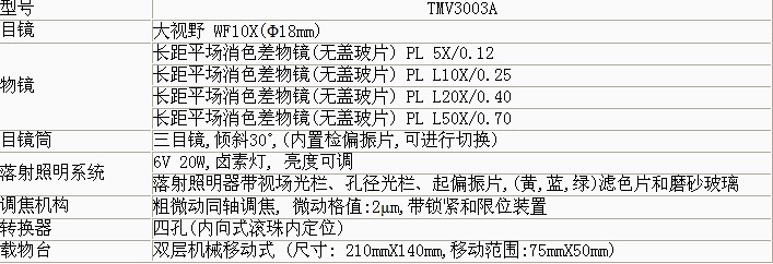 產(chǎn)品概述: 適用于對不透明物體的進行顯微觀察。 功能特點: 本儀器配置落射照明器、長距平場消色差物鏡(無蓋玻片)、大視野目鏡和內(nèi)置偏光觀察裝置,具有外型美觀,操作方便等特點,是金屬學、礦物學、精密工程學、電子學等研究的理想儀器。適用于學校、科研、工廠等部門使用。 技術(shù)參數(shù): ▲ 配置大視野目鏡和長距平場消色差物鏡(無蓋玻片),視場大而清晰。 ▲ 粗微動同軸調(diào)焦機構(gòu),,粗動松緊可調(diào),,帶限位鎖緊裝置,微動格值:2μm。 ▲ 6V 20W鹵素燈,亮度可調(diào)。 ▲ 三目鏡筒,可自由切換正常觀察與偏光觀察,,可進行100%透光攝影。 基本配置: