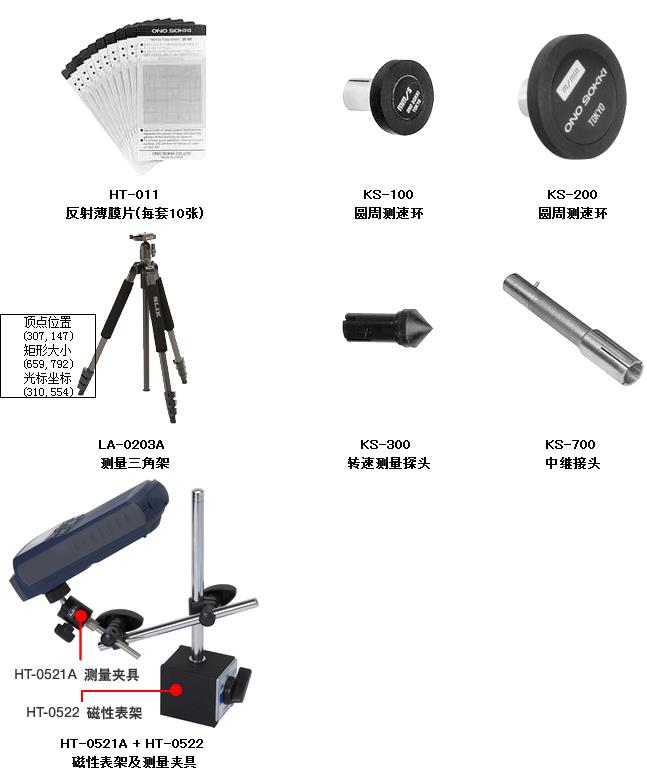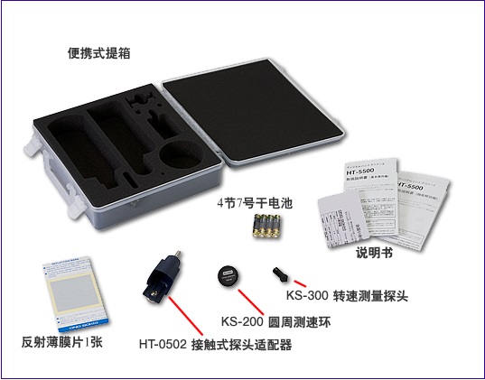 | 附屬品 | HT-0502 接觸式探頭適配器×1 KS-300 轉(zhuǎn)速探頭×1