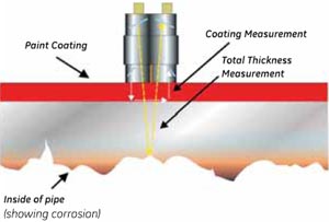 透過(guò)厚厚的油漆涂層測(cè)量剩余壁厚。