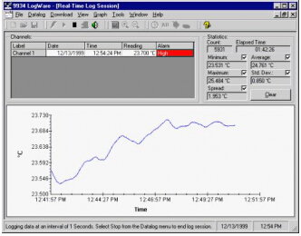 · 使用 Fluke Calibration 手持式和 Tweener 讀數(shù)裝置收集實(shí)時(shí)數(shù)據(jù) · 計(jì)算統(tǒng)計(jì)數(shù)值并顯示用戶(hù)定制圖表 · 允許用戶(hù)選擇啟動(dòng)時(shí)間、停止時(shí)間和取樣周期 · 提供由用戶(hù)定義的告警,,該告警會(huì)觸發(fā)用戶(hù)定制的告警事件 · 使用串行端口或 IR 端口,,從 1522 型讀數(shù)裝置下載數(shù)據(jù) · 內(nèi)置用于讀取/寫(xiě)入探頭系數(shù)以及其他讀數(shù)裝置設(shè)置的工具 · LogWare 使您可以通過(guò)圖表方式將數(shù)據(jù)采集至您的 PC,并將數(shù)據(jù)存儲(chǔ)在文本文件中。同時(shí),,該軟件還能自動(dòng)對(duì)每個(gè)數(shù)據(jù)集執(zhí)行統(tǒng)計(jì)功能。其安裝非常簡(jiǎn)單,,無(wú)需閱讀手冊(cè)就可使用。 · LogWare 設(shè)計(jì)用于溫度數(shù)據(jù)采集。設(shè)定高級(jí)和低級(jí)告警條件,設(shè)置延遲啟動(dòng)時(shí)間,按照固定數(shù)目的讀數(shù)或固定時(shí)間長(zhǎng)度存儲(chǔ)數(shù)據(jù)記錄,在 1 秒到 24 小時(shí)之間設(shè)置采集周期,,然后讓軟件從讀數(shù)裝置中獲取讀數(shù),同時(shí)您可以完成其余的工作。 · 在記錄會(huì)話過(guò)程中,您可以查看時(shí)間/溫度趨勢(shì)圖中的數(shù)據(jù),而數(shù)據(jù)點(diǎn)會(huì)存儲(chǔ)至您 PC 上的文件中。在記錄完成后,可以將圖表輸出至您的打印機(jī),,通過(guò)電子數(shù)據(jù)表查看測(cè)試點(diǎn),或者重新查看相關(guān)的記錄統(tǒng)計(jì)數(shù)值。 · 如果您擁有 1522 型 LLL 數(shù)據(jù)記錄器,那么您還能享受更多功能。1522 可在多個(gè)記錄會(huì)話中存儲(chǔ)多達(dá) 10000 個(gè)數(shù)據(jù)點(diǎn)。返回到您的 PC 后,可以使用 LogWare 將數(shù)據(jù)下載到單個(gè)的記錄會(huì)話中,并單獨(dú)查看每一個(gè)會(huì)話。 · 在現(xiàn)場(chǎng)取出 1522,存儲(chǔ)來(lái)自制冷器、烘箱、腔室以及任何您需要記錄溫度的設(shè)備讀數(shù),再將 1522 與 PC 連接,LogWare 會(huì)將每個(gè)記錄會(huì)話分成單獨(dú)的數(shù)據(jù)集。您無(wú)需在您的電子數(shù)據(jù)表內(nèi)載入文本文件,,并試著分清每個(gè)記錄會(huì)話對(duì)應(yīng)哪些數(shù)據(jù)點(diǎn)。LogWare 會(huì)為您完成全部這些操作。 · 為了更迅速地從 1522 下載數(shù)據(jù),,除了標(biāo)準(zhǔn)串行接口以外,我們還提供了 IR 鏈路。高速發(fā)送您的數(shù)據(jù),,或使用標(biāo)準(zhǔn)的 RS-232 鏈路。 · LogWare 還允許您更改讀數(shù)裝置配置。設(shè)定探頭系數(shù)、將校準(zhǔn)數(shù)據(jù)寫(xiě)入計(jì)量器、設(shè)定受通行碼保護(hù)的參數(shù),,以及訪問(wèn)其他專(zhuān)用于您的讀數(shù)裝置的工具,這些操作全部在 PC 上的用戶(hù)友好 Windows 屏幕中進(jìn)行。
