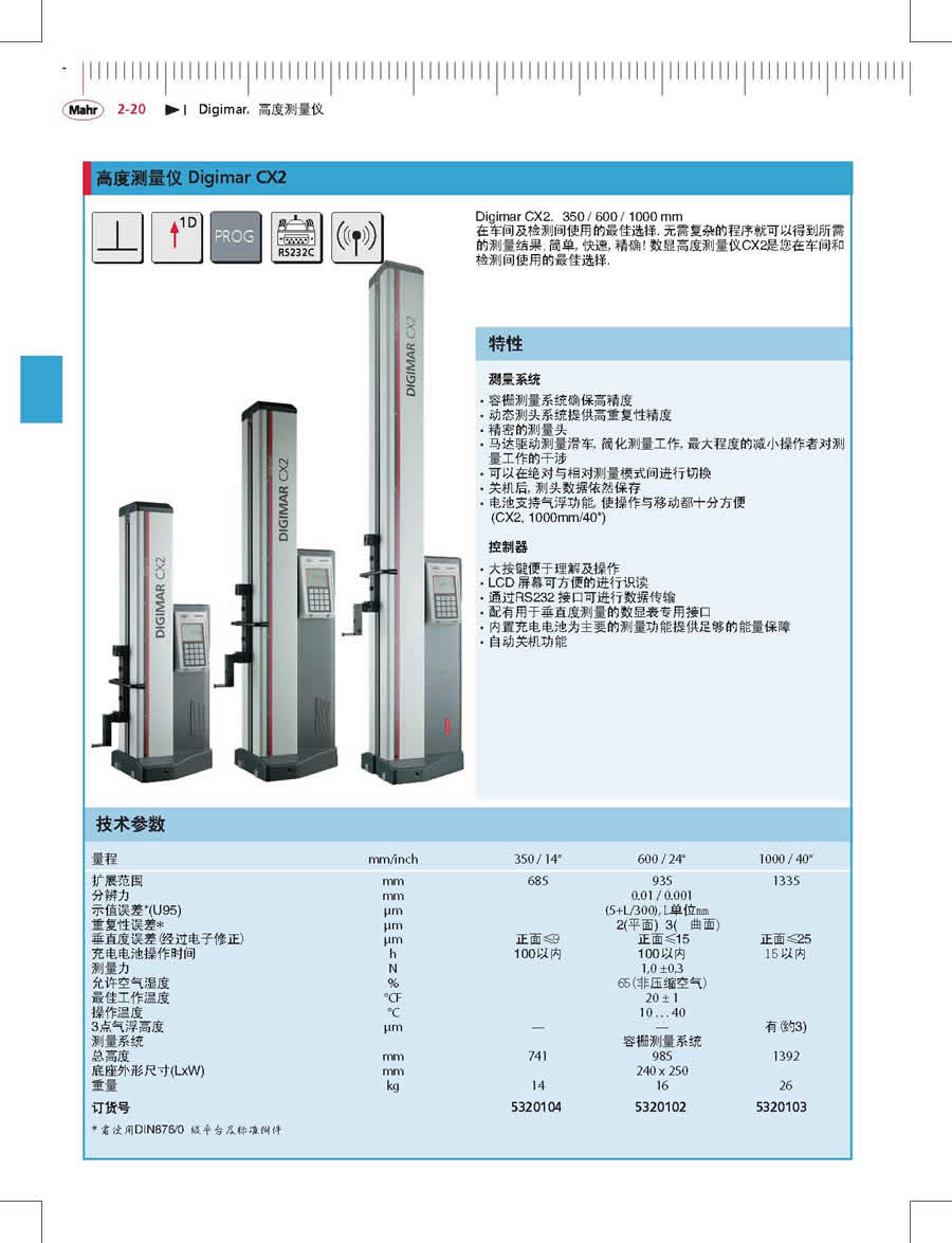 Digimar CX2數(shù)顯高度儀是在車間及檢測(cè)間使用的最佳選擇,測(cè)高儀使用,無(wú)需復(fù)雜的程序就可以得到所需的測(cè)量結(jié)果;簡(jiǎn)單,蘇州測(cè)高儀價(jià)格,快速,測(cè)高儀工作原理,精確!數(shù)顯高度測(cè)量?jī)xCX2是您在車間和檢測(cè)間使用的最佳選擇。