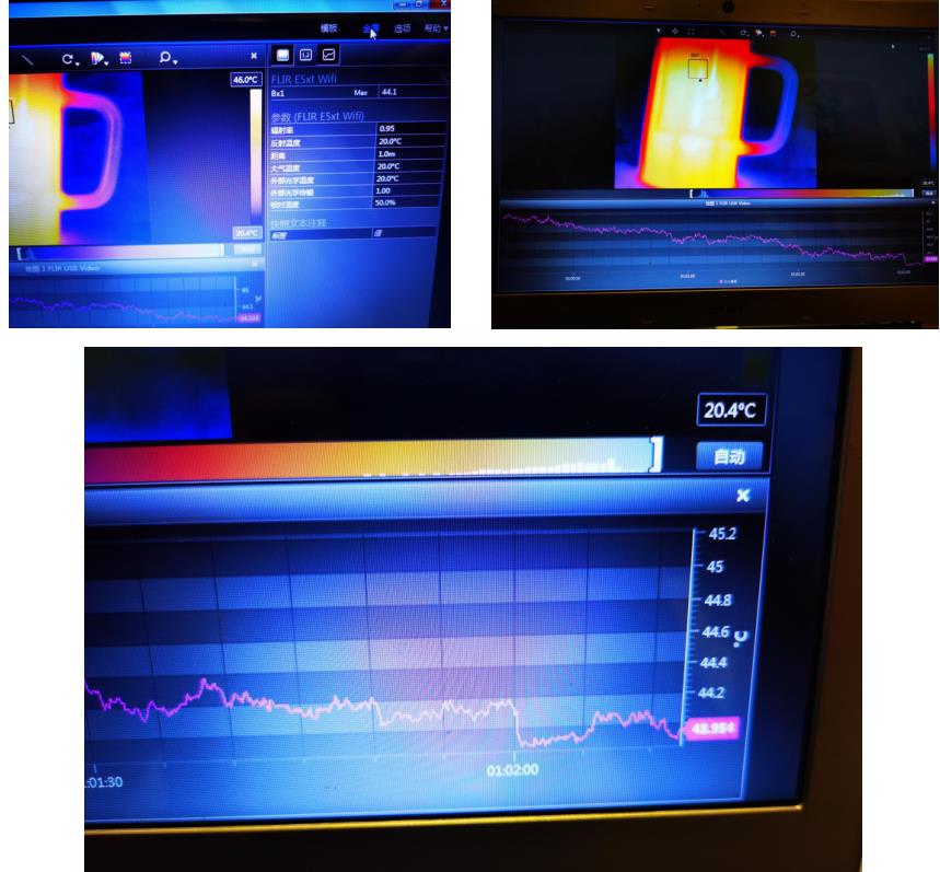 此時(shí)右上角 Bx1 Max 會(huì)顯示矩形框內(nèi)最高溫度, 即被測對(duì)象的溫度測量值。 另外, 在圖像下部繪圖區(qū),也會(huì)看到實(shí)時(shí)變化的矩形框內(nèi)最高溫曲線。 以上兩個(gè)數(shù)據(jù)都可以幫助檢查人員及時(shí)發(fā)現(xiàn)被測人員是否溫度超標(biāo)。